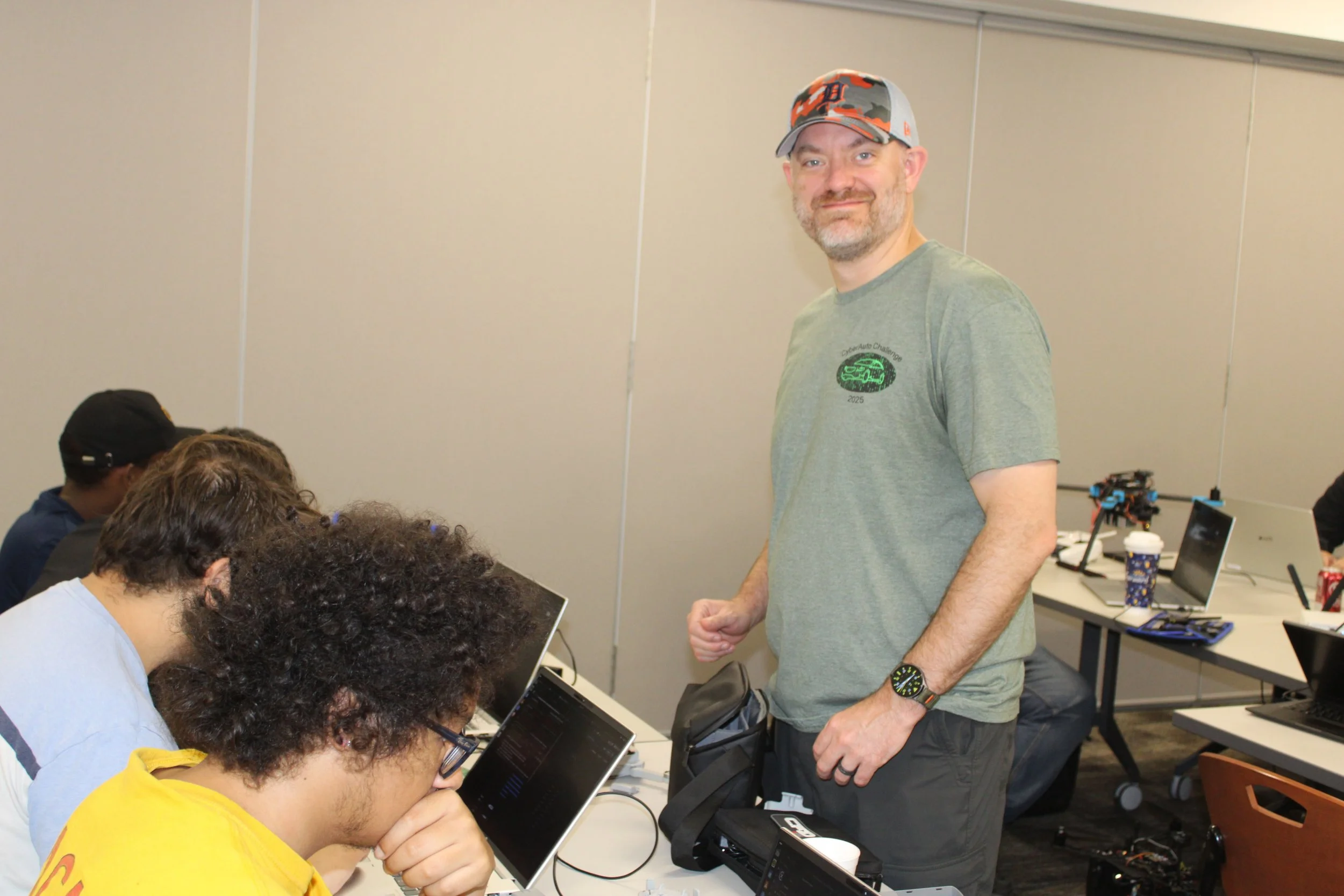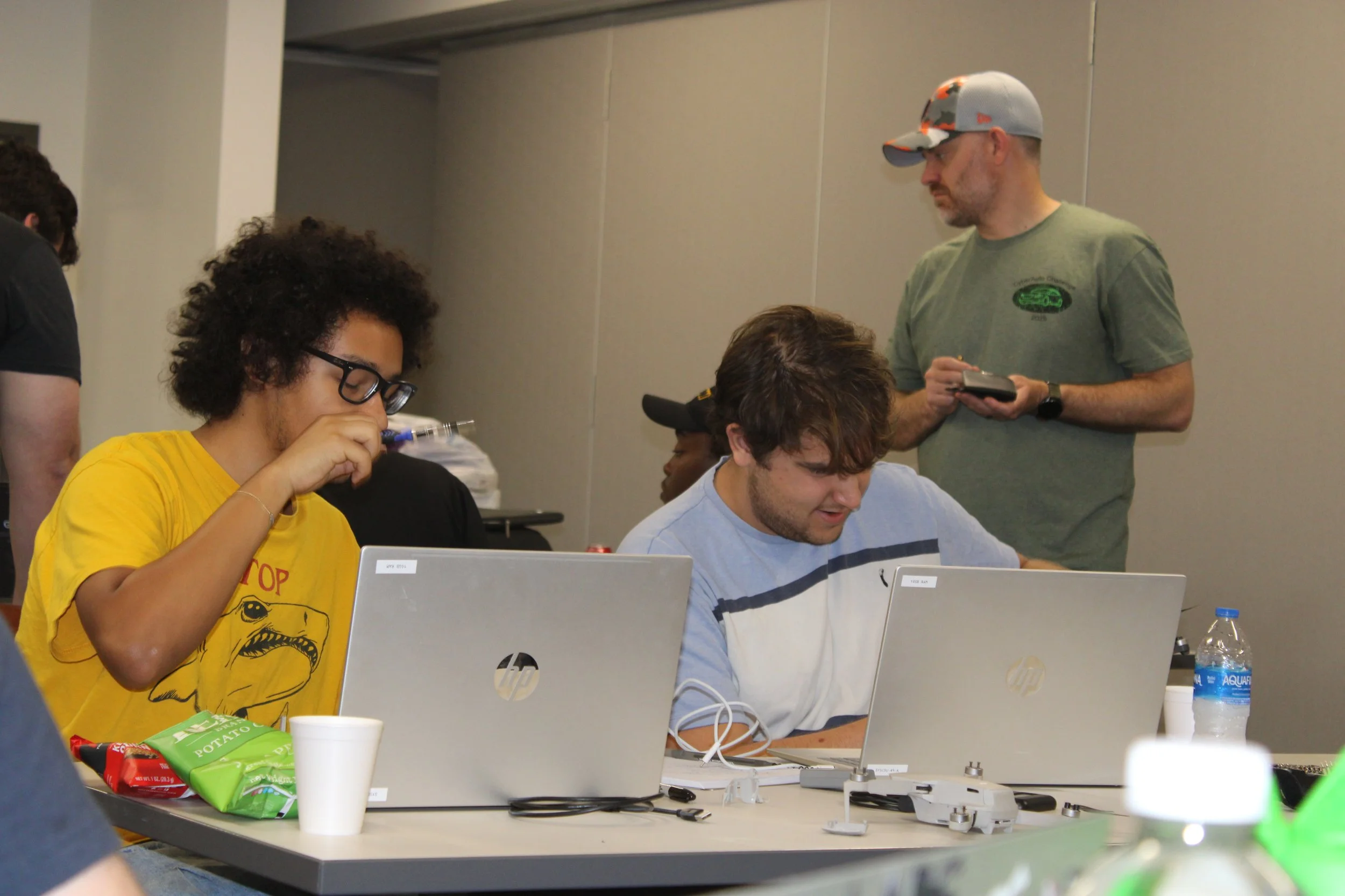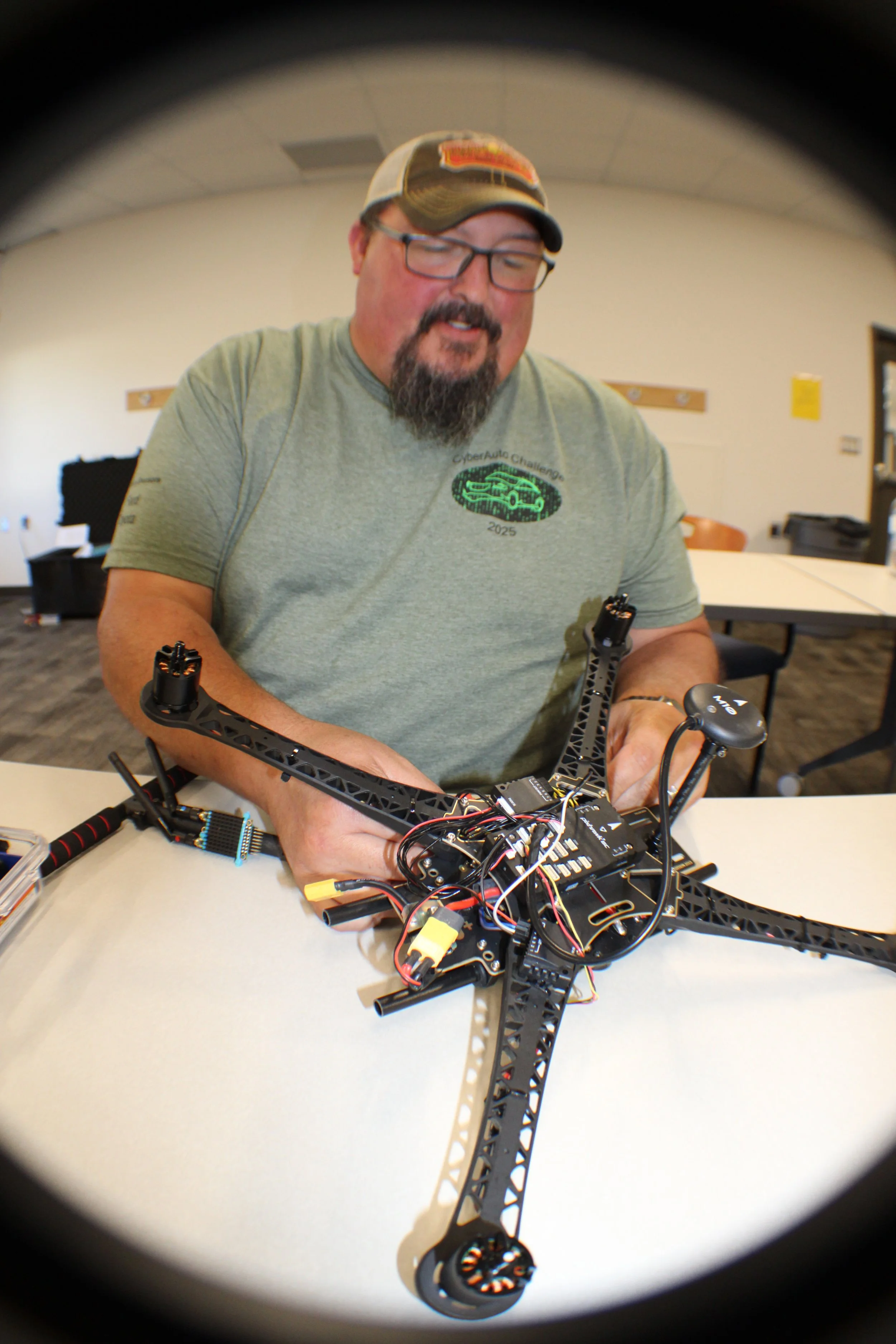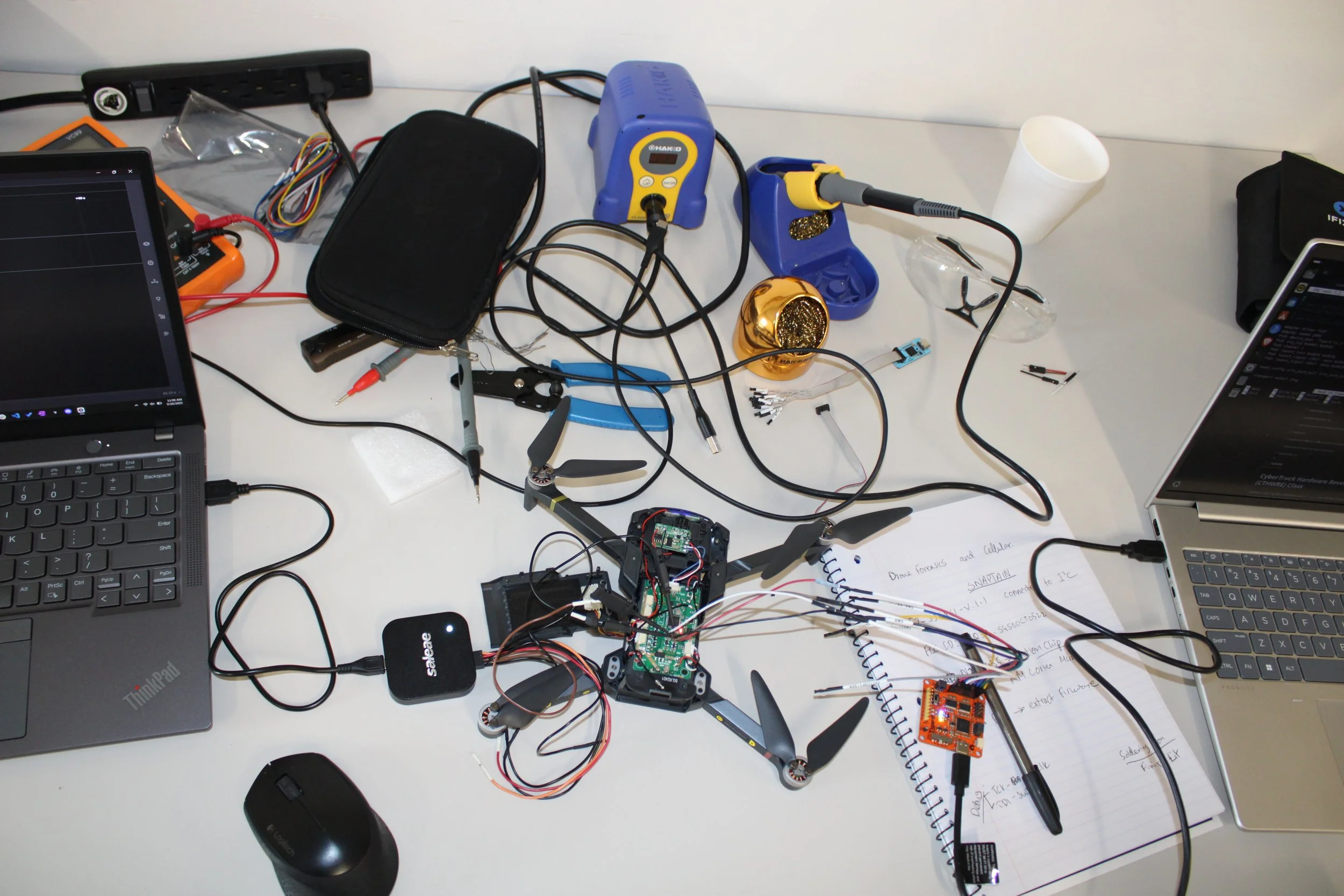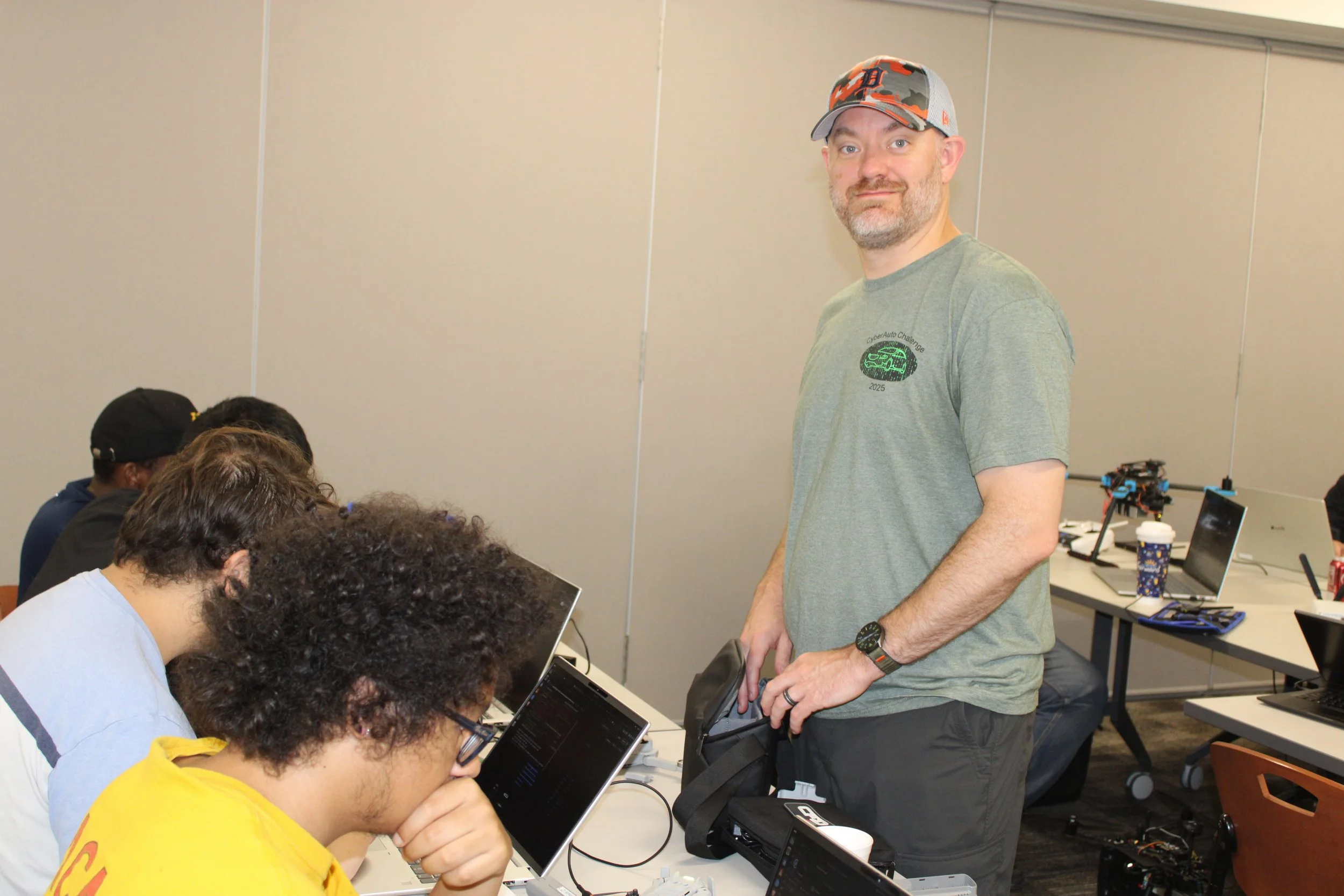 The 2025 CyberDrone Challenge was held from September 14th-19th at Camp Grayling, MI. Students from universities across the US came to learn from exceptional hackers and operational specialists and then practice reverse engineering and forensics analysis.