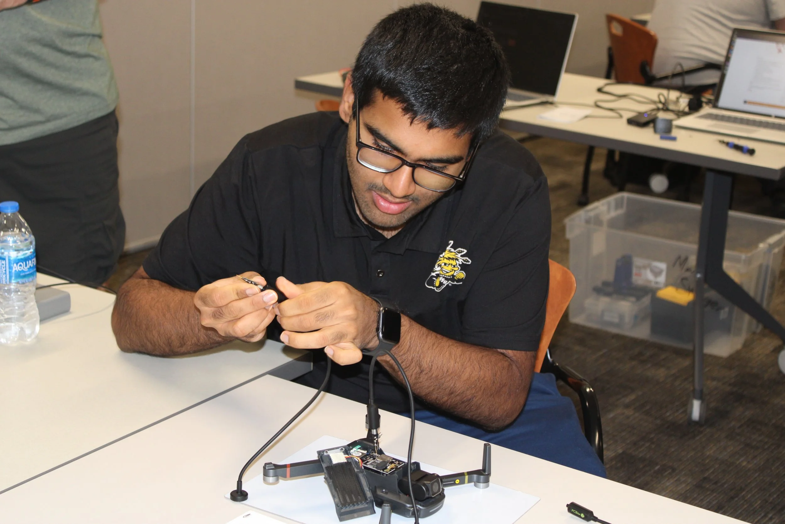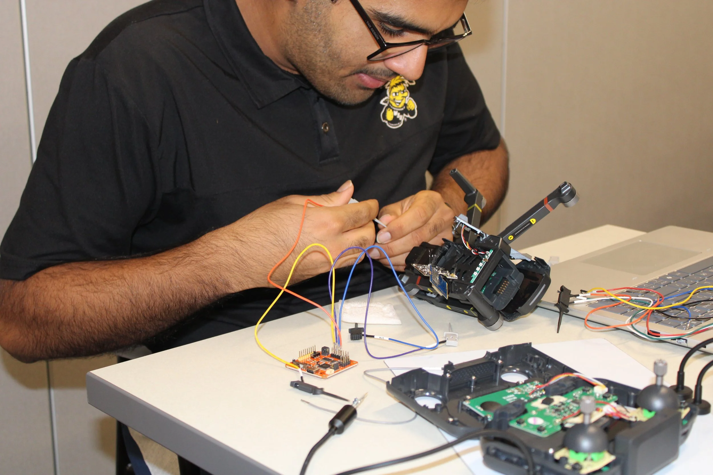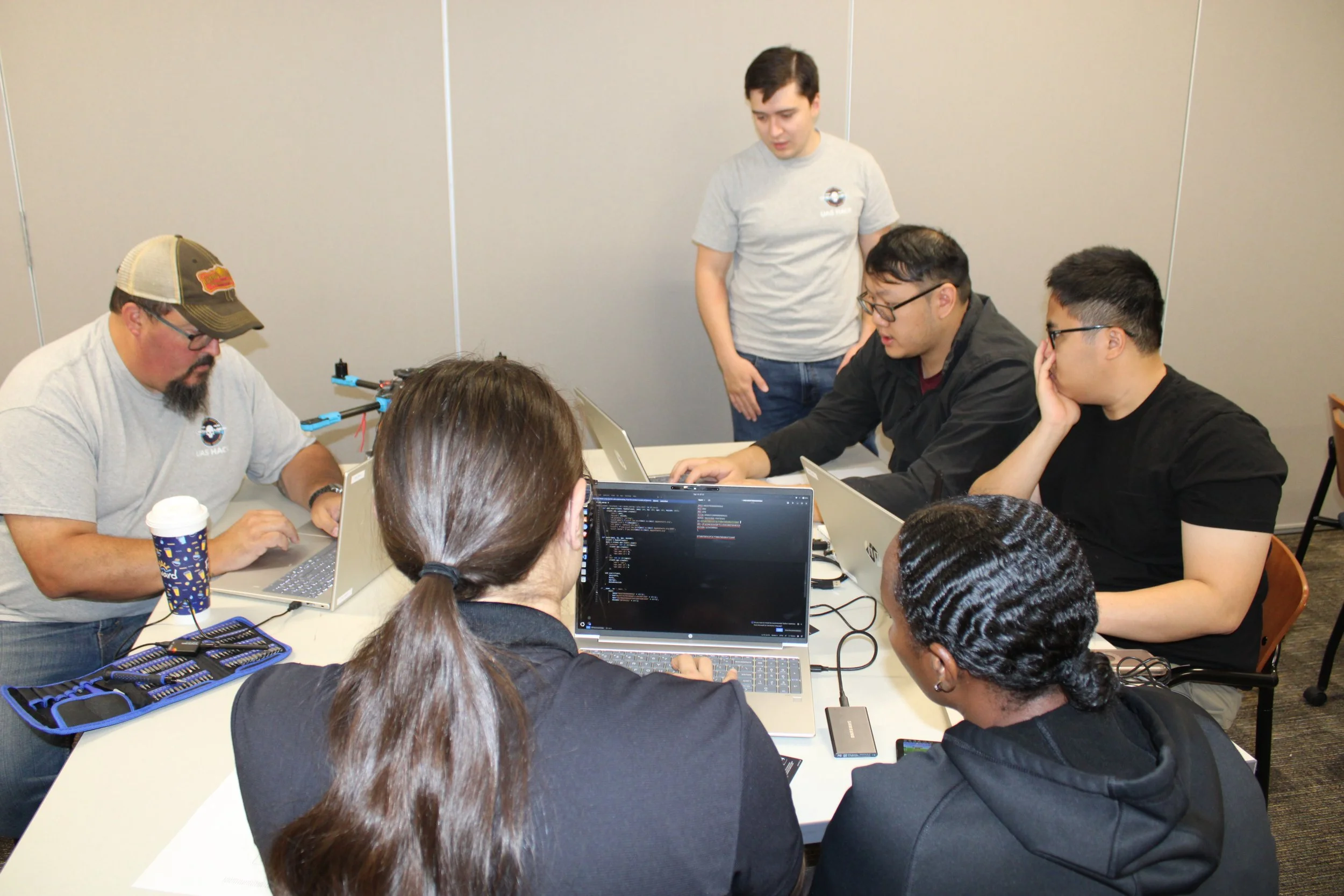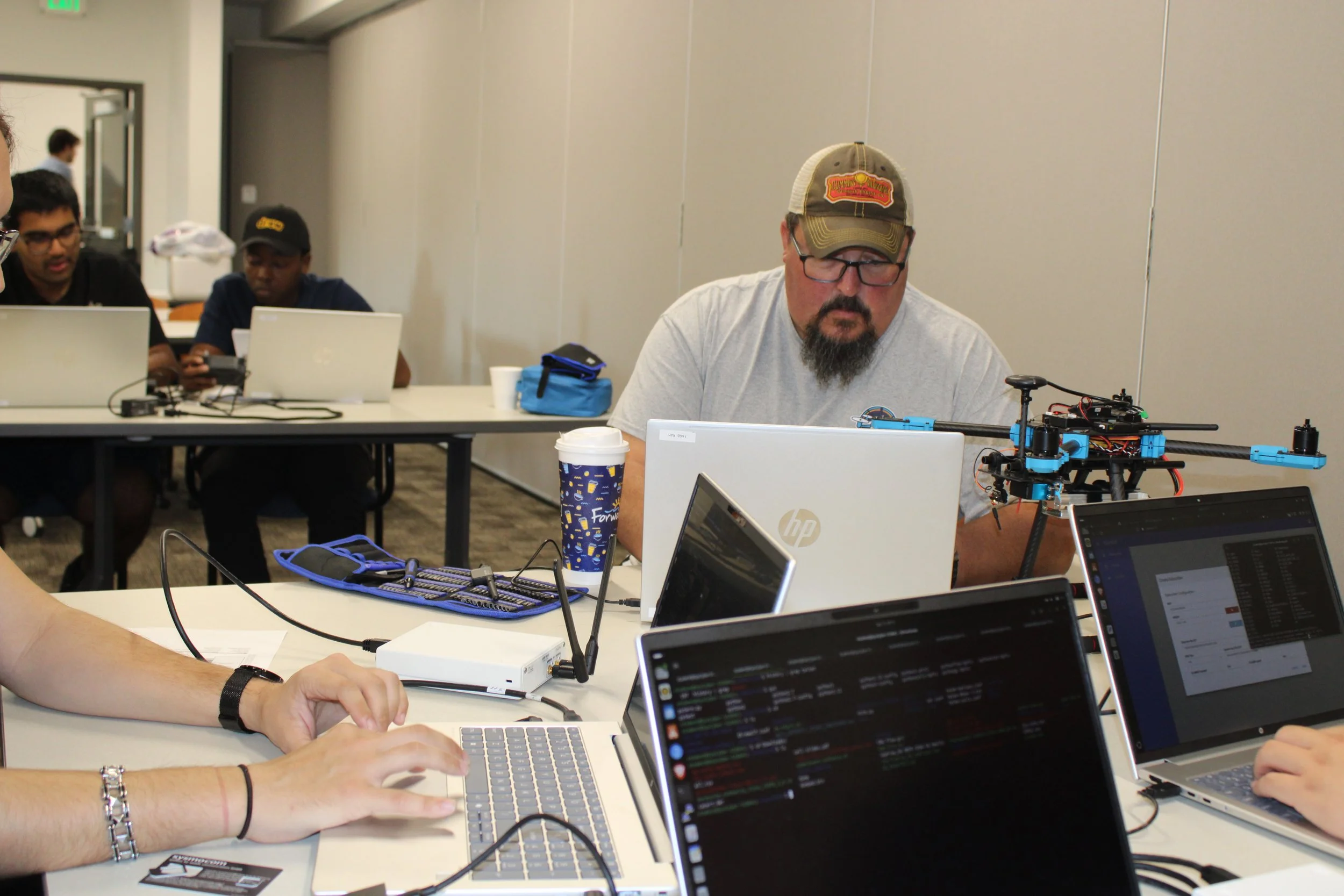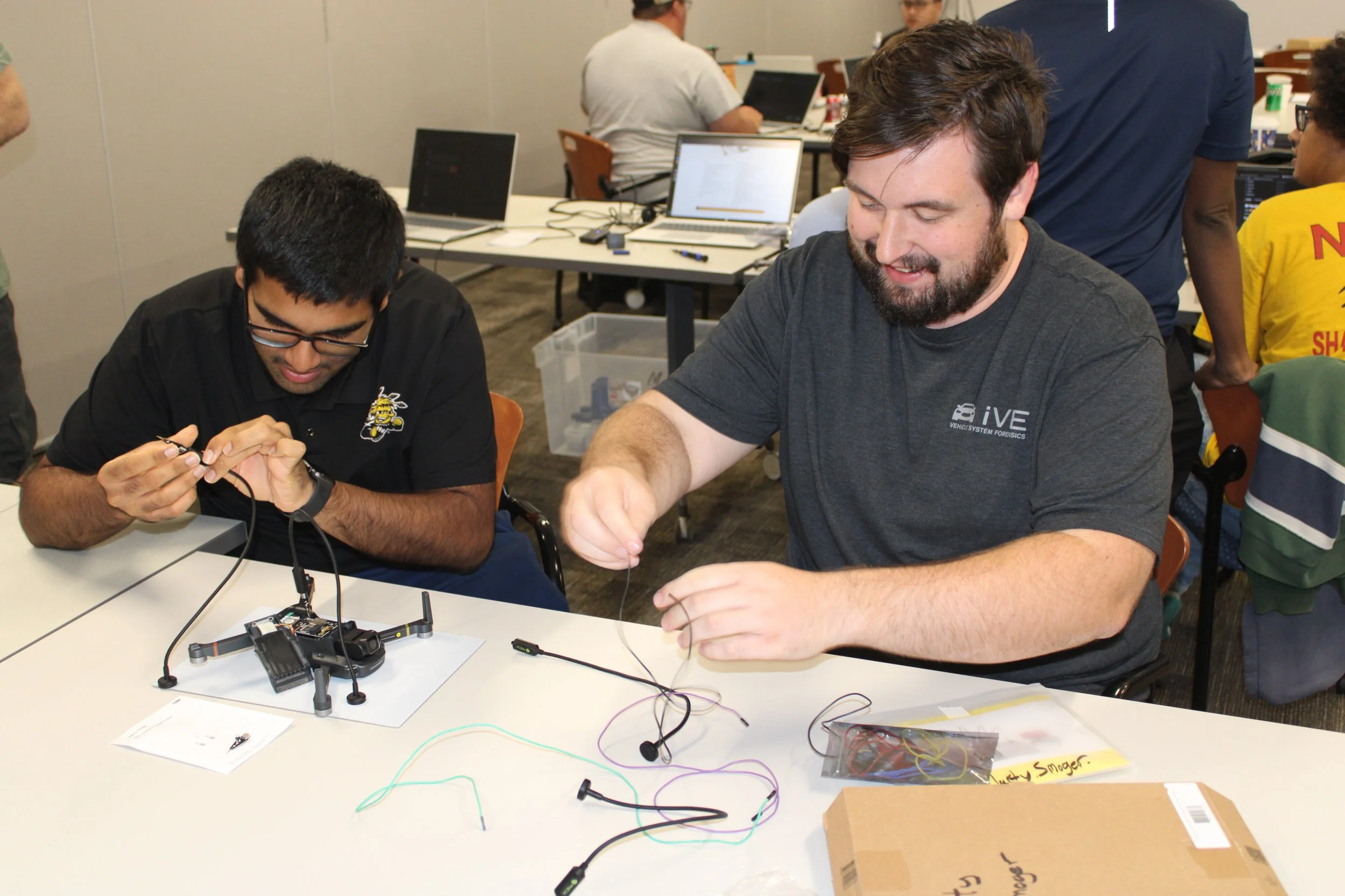 The 2025 CyberDrone Challenge was held from September 14th-19th at Camp Grayling, MI. Students from universities across the US came to learn from exceptional hackers and operational specialists and then practice reverse engineering and forensics analysis.