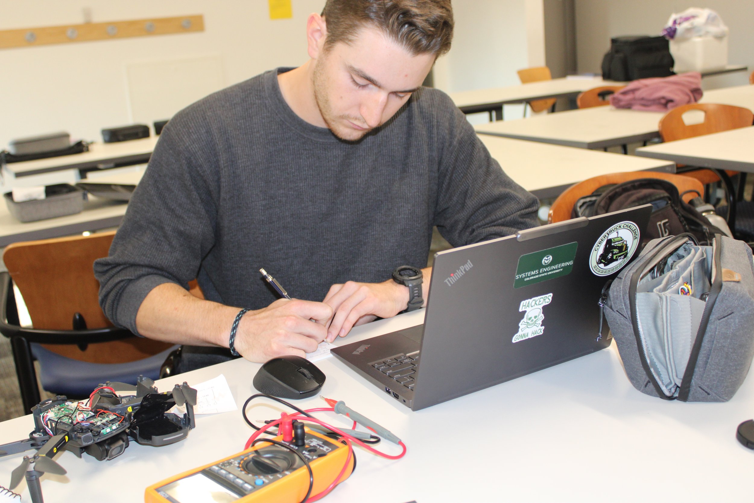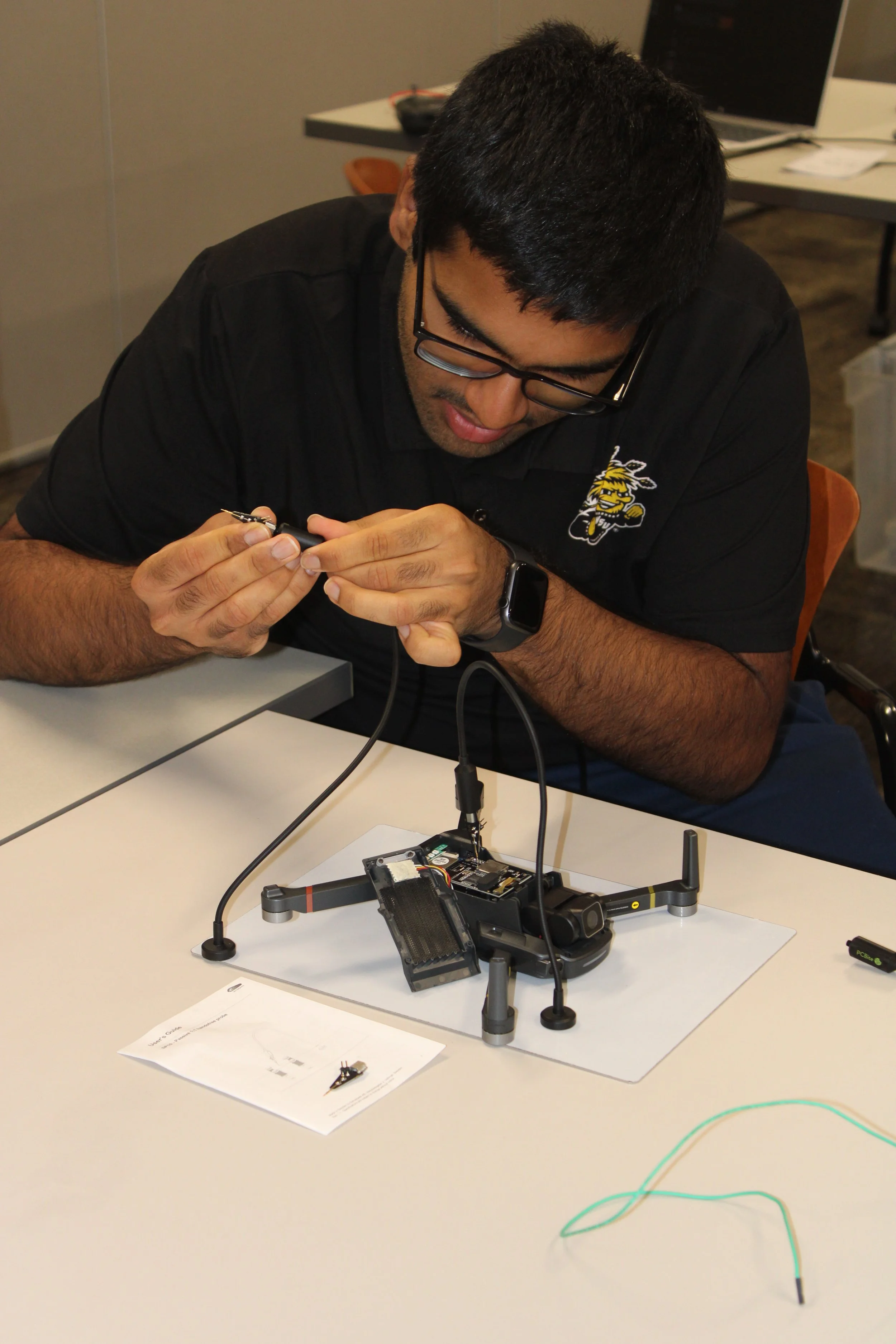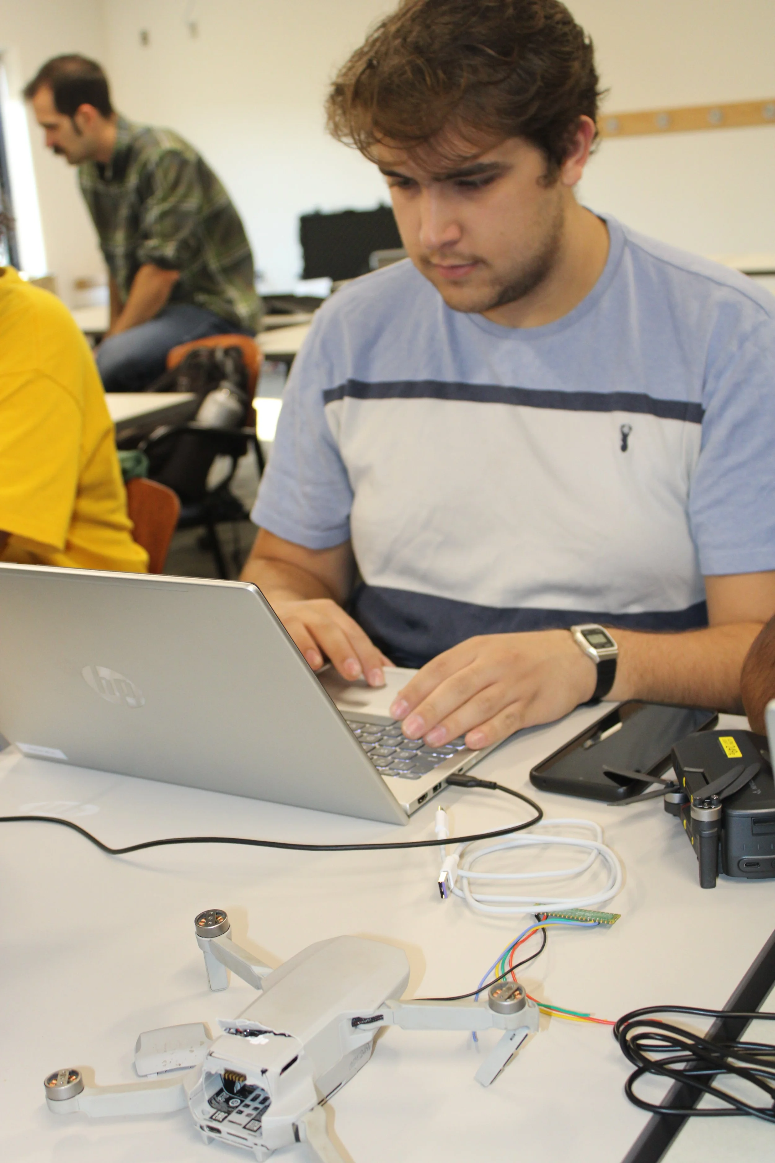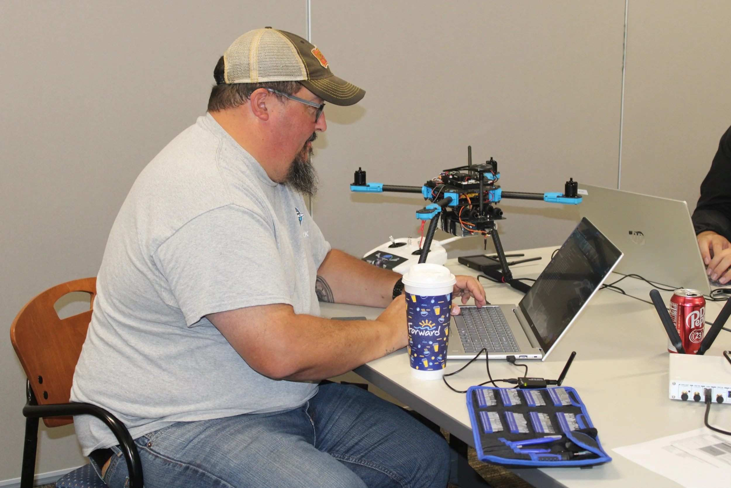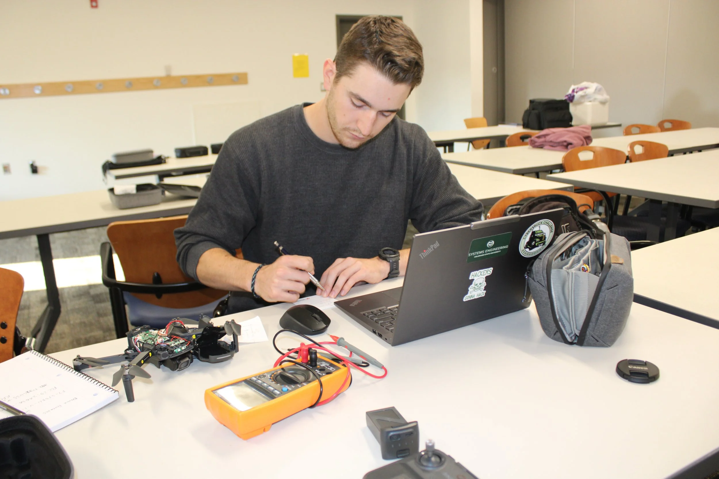 The 2025 CyberDrone Challenge was held from September 14th-19th at Camp Grayling, MI. Students from universities across the US came to learn from exceptional hackers and operational specialists and then practice reverse engineering and forensics analysis.