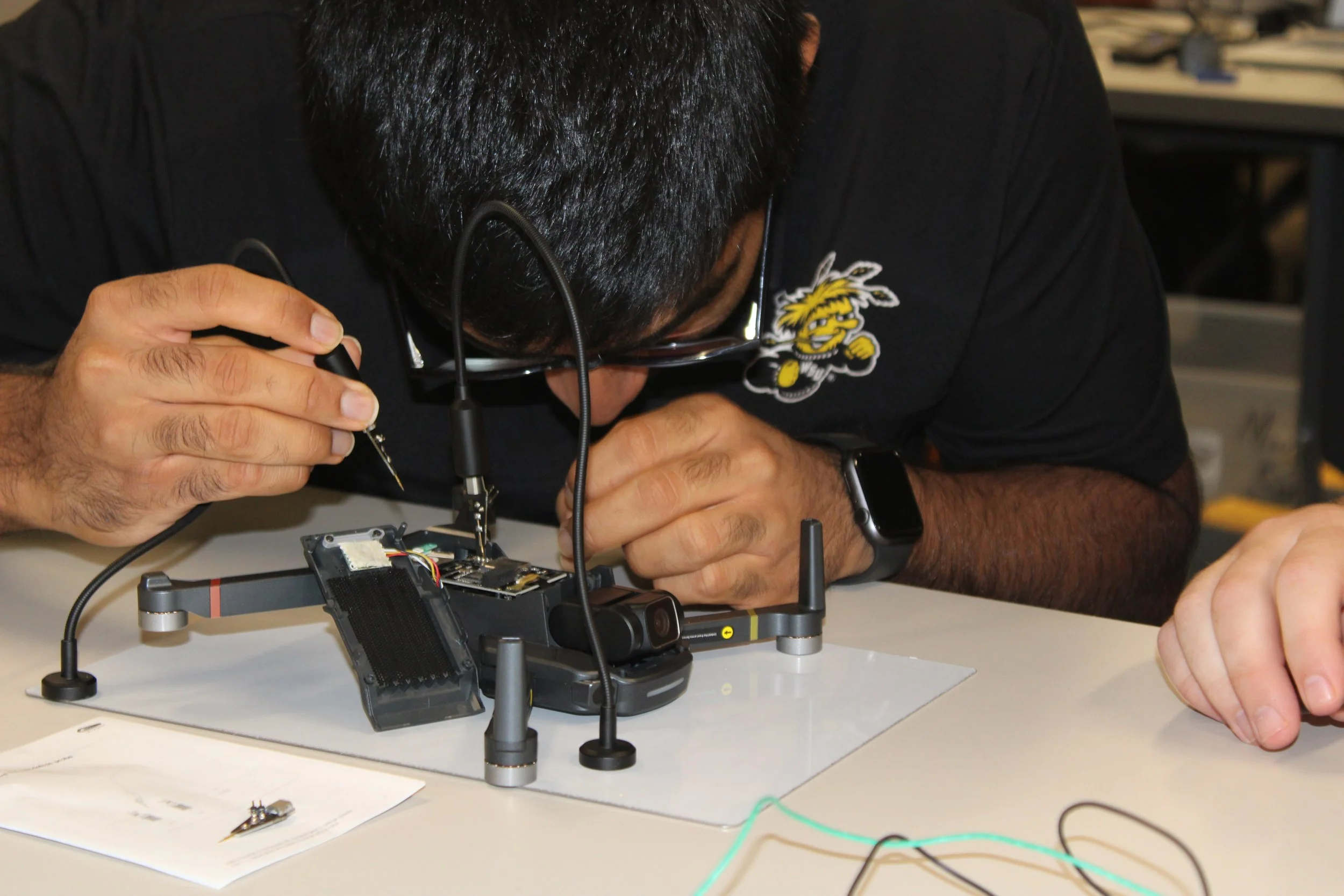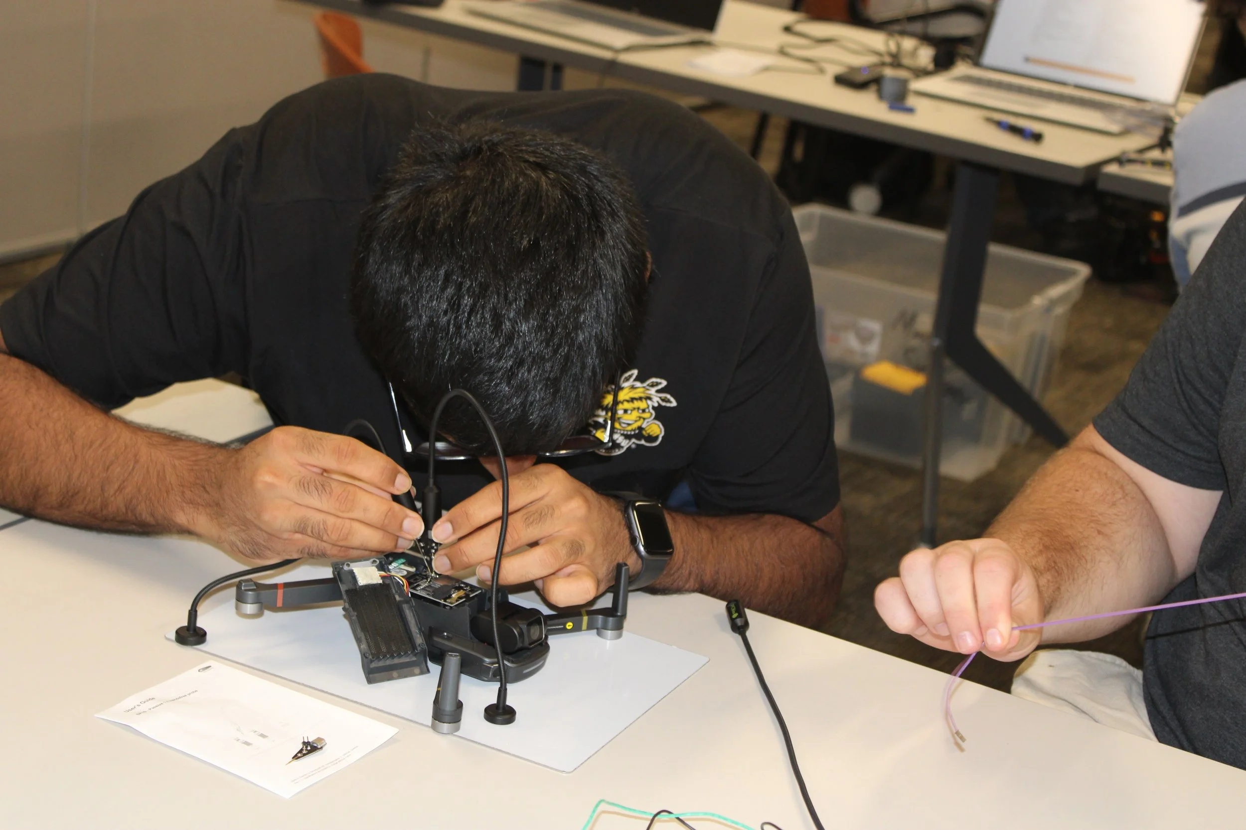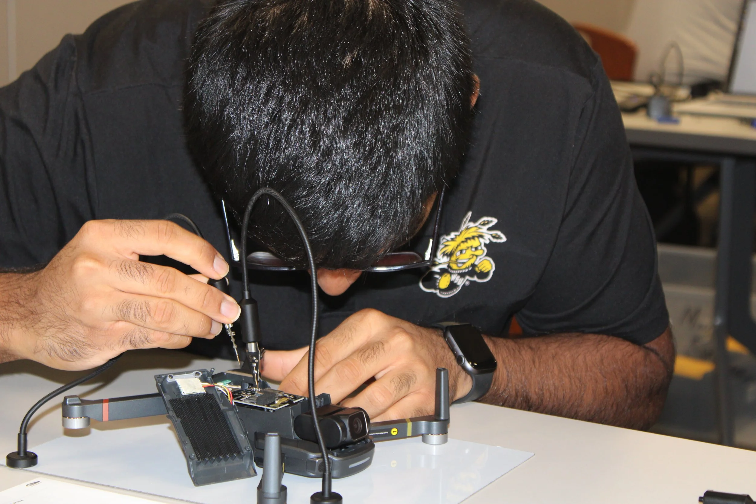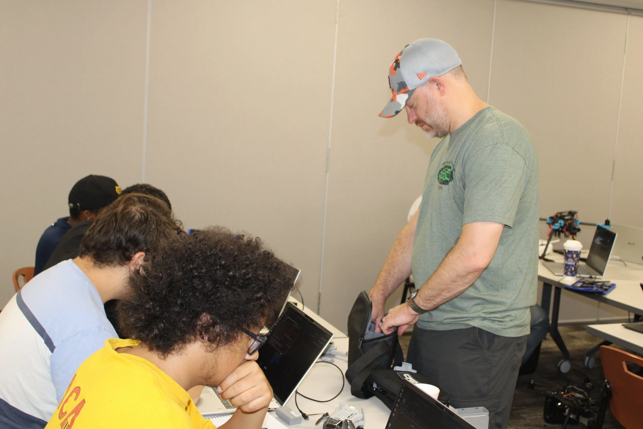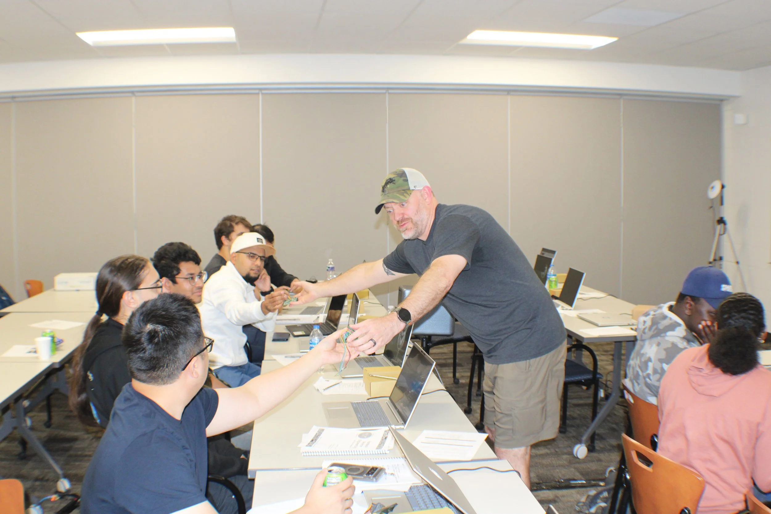 The 2025 CyberDrone Challenge was held from September 14th-19th at Camp Grayling, MI. Students from universities across the US came to learn from exceptional hackers and operational specialists and then practice reverse engineering and forensics analysis.